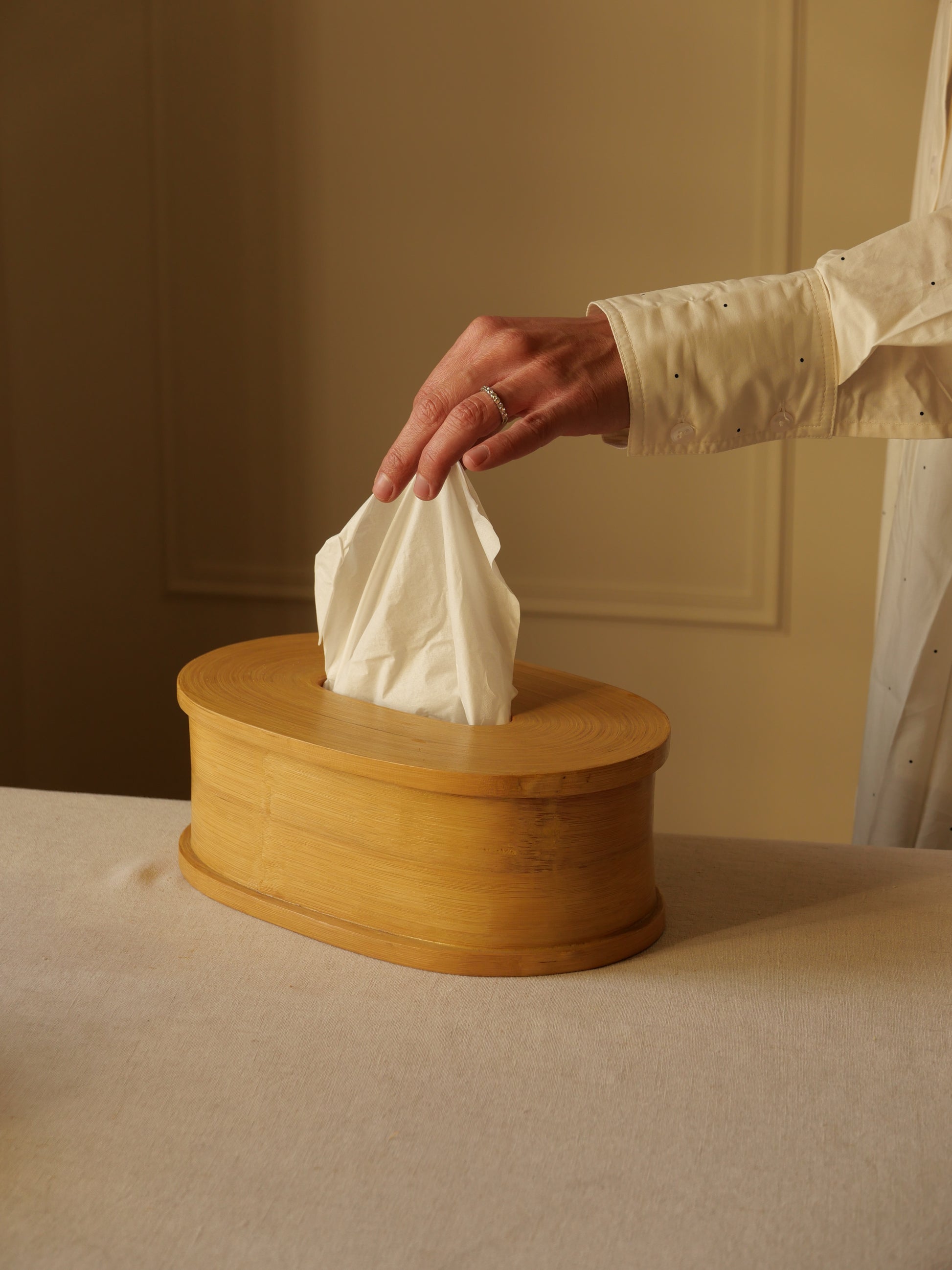 Cette boîte à mouchoirs en bambou naturel apporte une touche douce et organique à votre intérieur grâce à ses formes arrondies et son design épuré. Sa silhouette délicatement courbée met en valeur la finesse des fibres de bambou et crée une présence chaleureuse, idéale pour adoucir une salle de bain, une chambre ou un salon.
