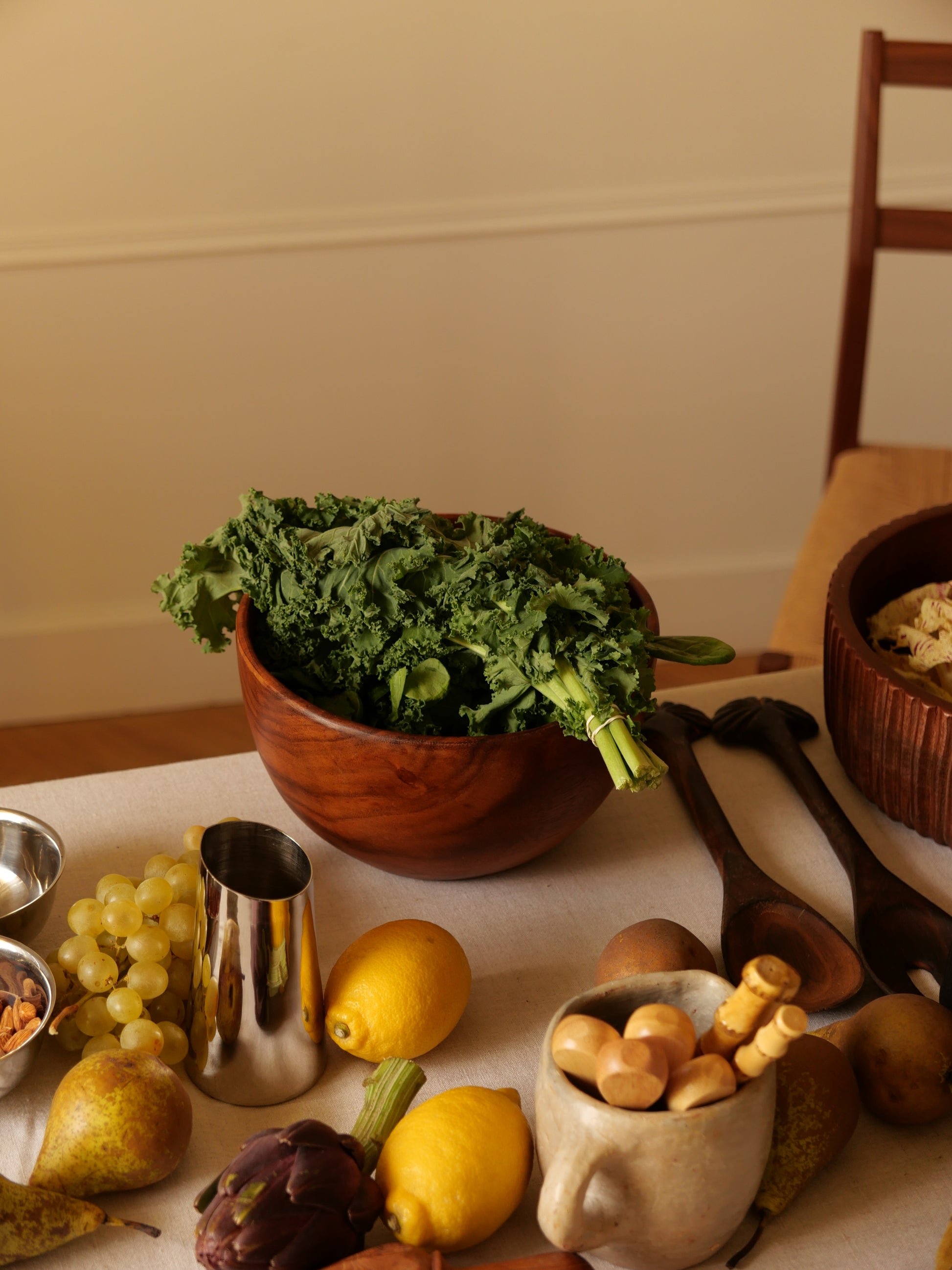 Sculpté dans une seule pièce de bois, il offre une stabilité parfaite et une finition douce au toucher, idéale pour accueillir salades, fruits, ou pour être laissé en pièce décorative au centre de la table.
