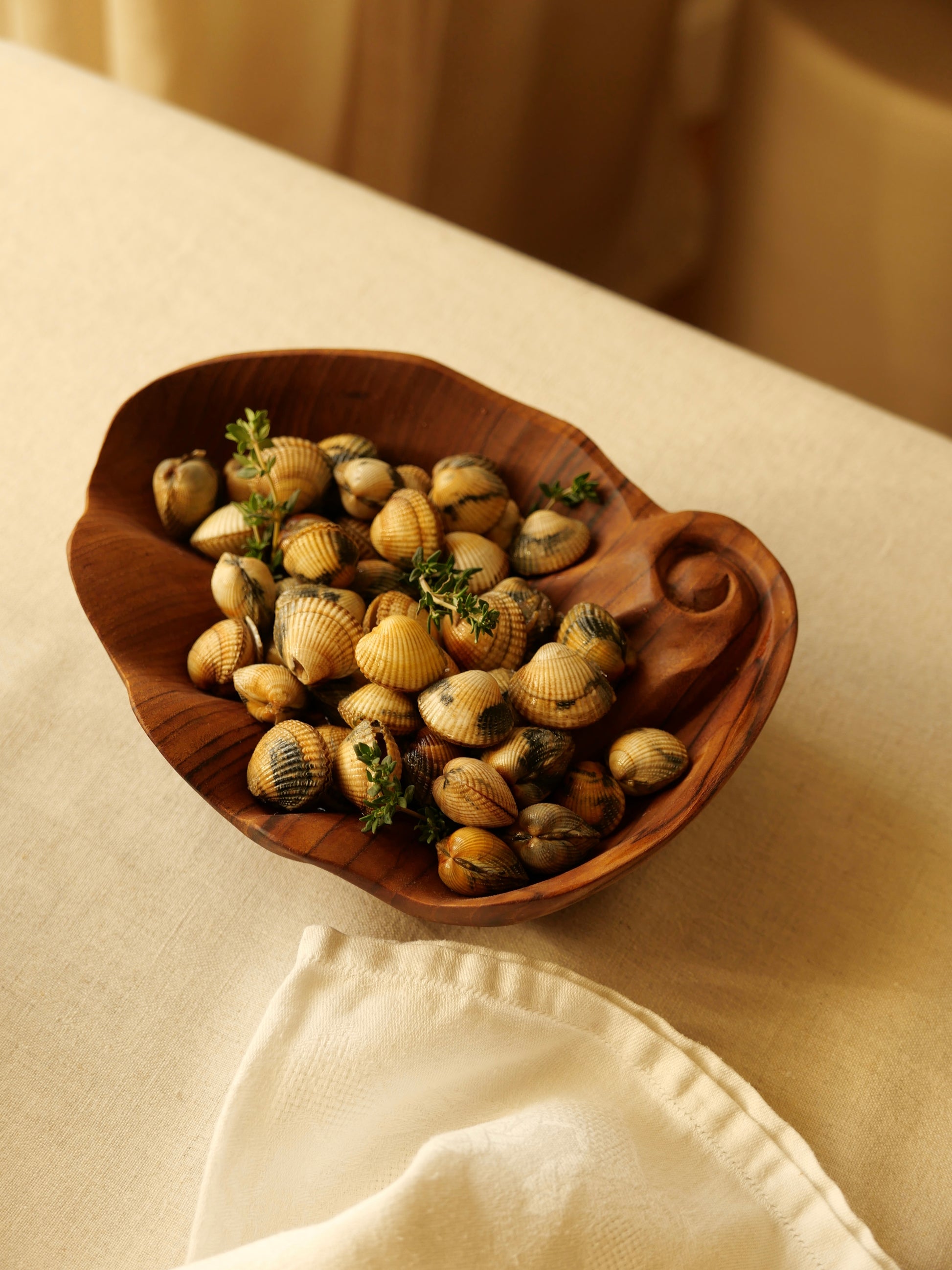 Le plat en coquillage est un choix esthétique et fonctionnel pour présenter ses mets de manière raffinée. Il offre une expérience culinaire à ses invités par son design unique.