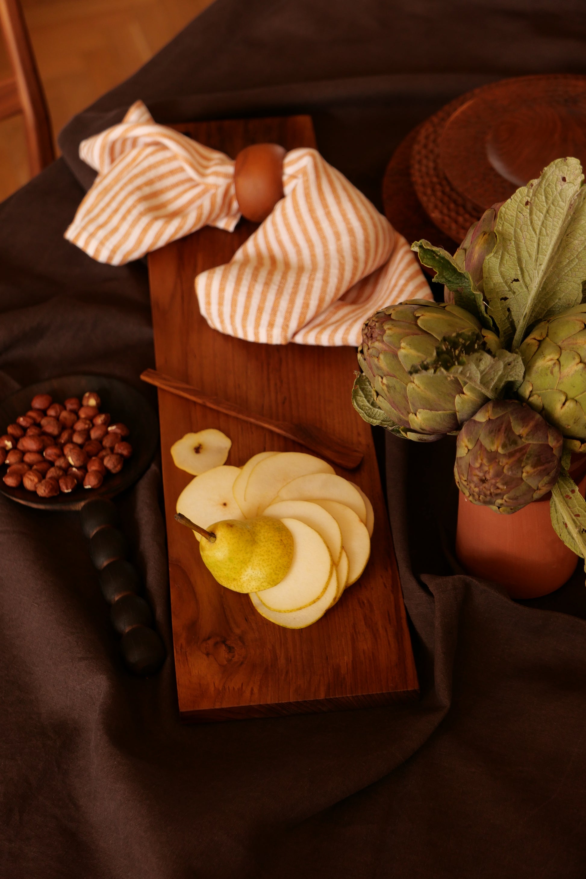 Apportez une touche d'élégance naturelle à votre cuisine avec notre grande planche en teck. Fabriquée à partir de bois de teck massif de première qualité, cette planche combine esthétique et fonctionnalité, idéale pour une variété d'utilisations culinaires.