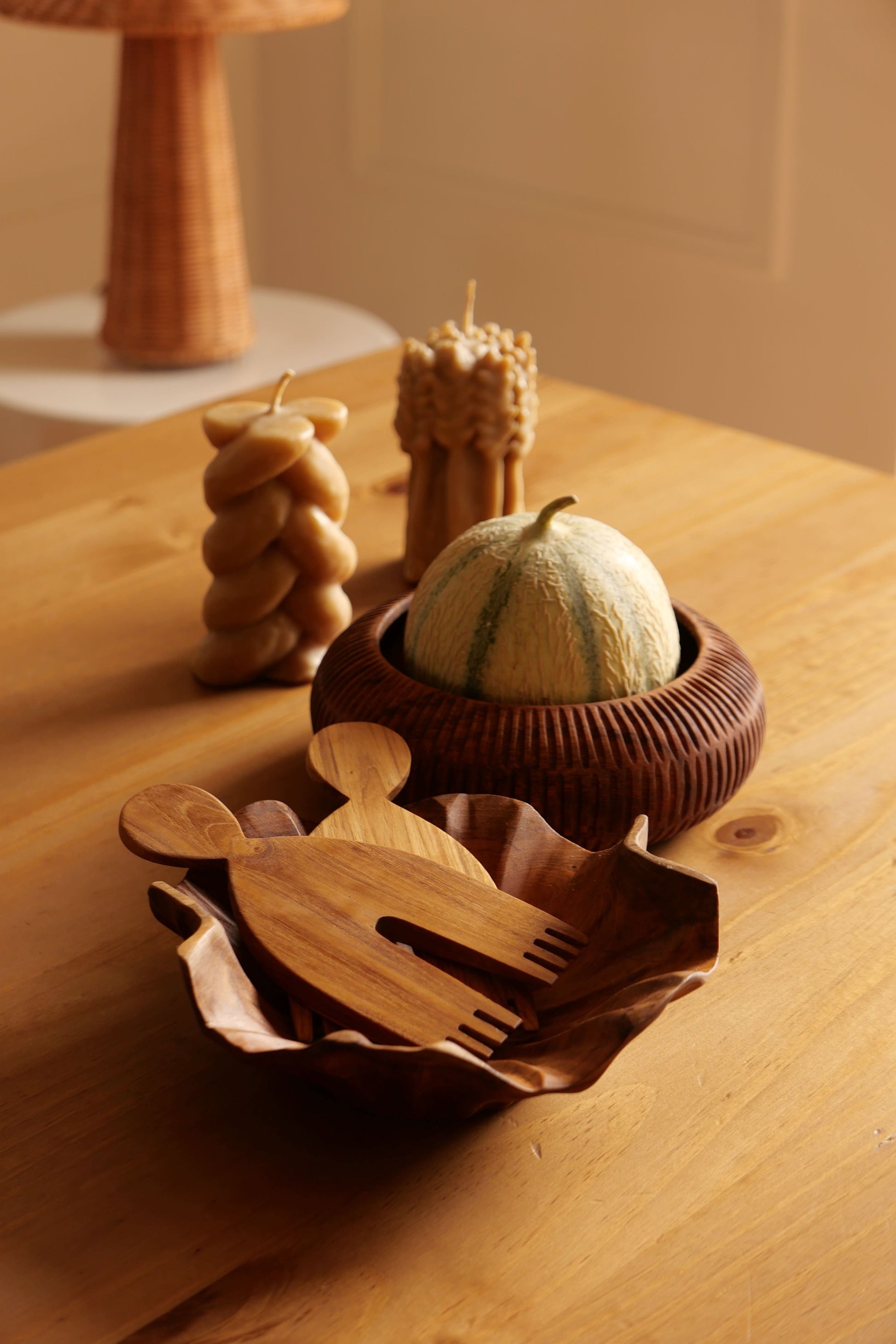 Découvrez nos adorables couverts à salade de petits modèles en teck, parfaits pour ajouter une touche de charme à votre service de table.
