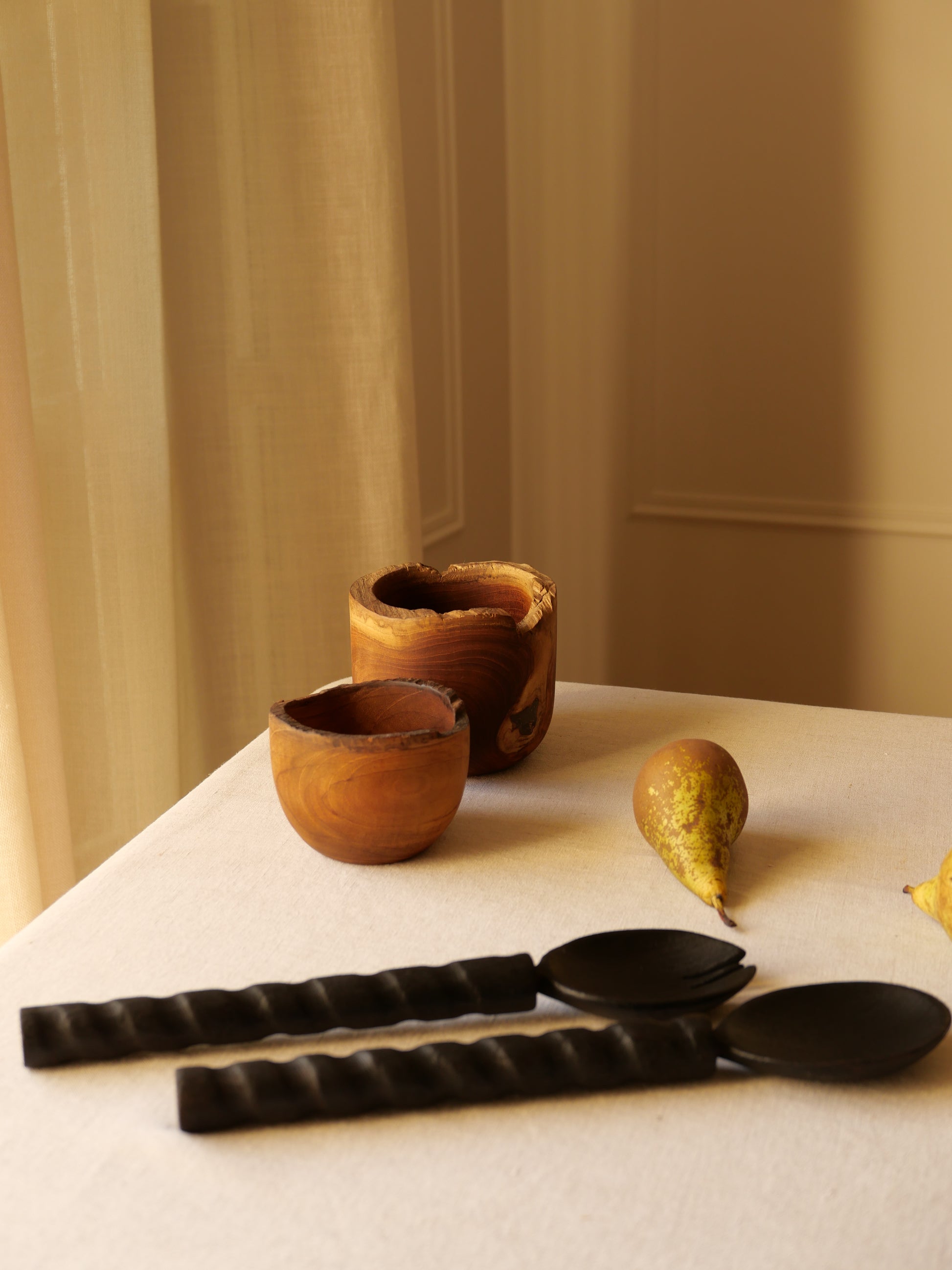 Leur design torsadé unique combine élégance et fonctionnalité, tandis que le bois leur confère une allure chaleureuse et authentique.