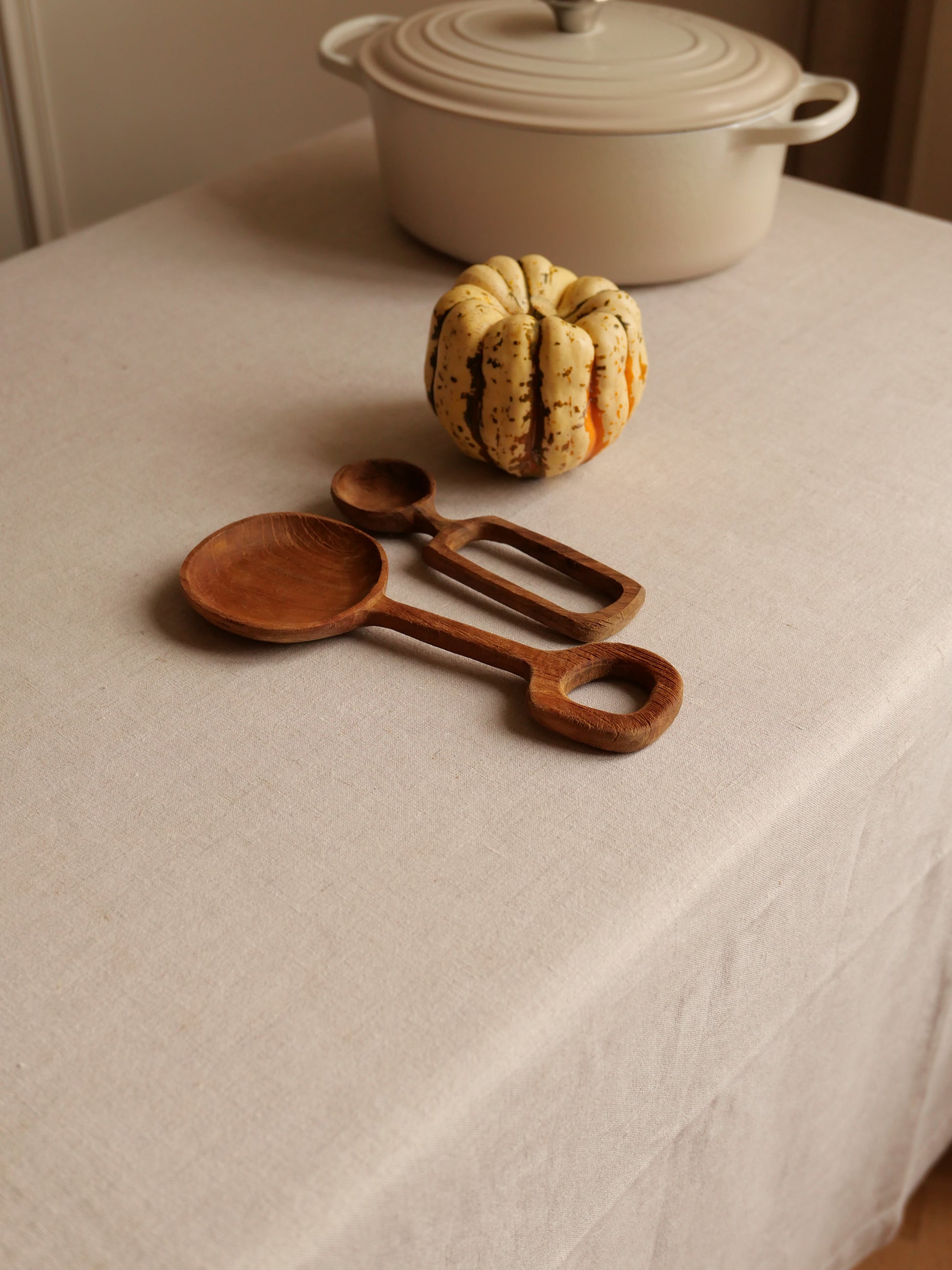Fabriquées à partir de bois de teck de haute qualité, chaque cuillère est soigneusement sculptée à la main, ce qui leur confère une forme irrégulière et organique, rappelant la beauté naturelle du bois.