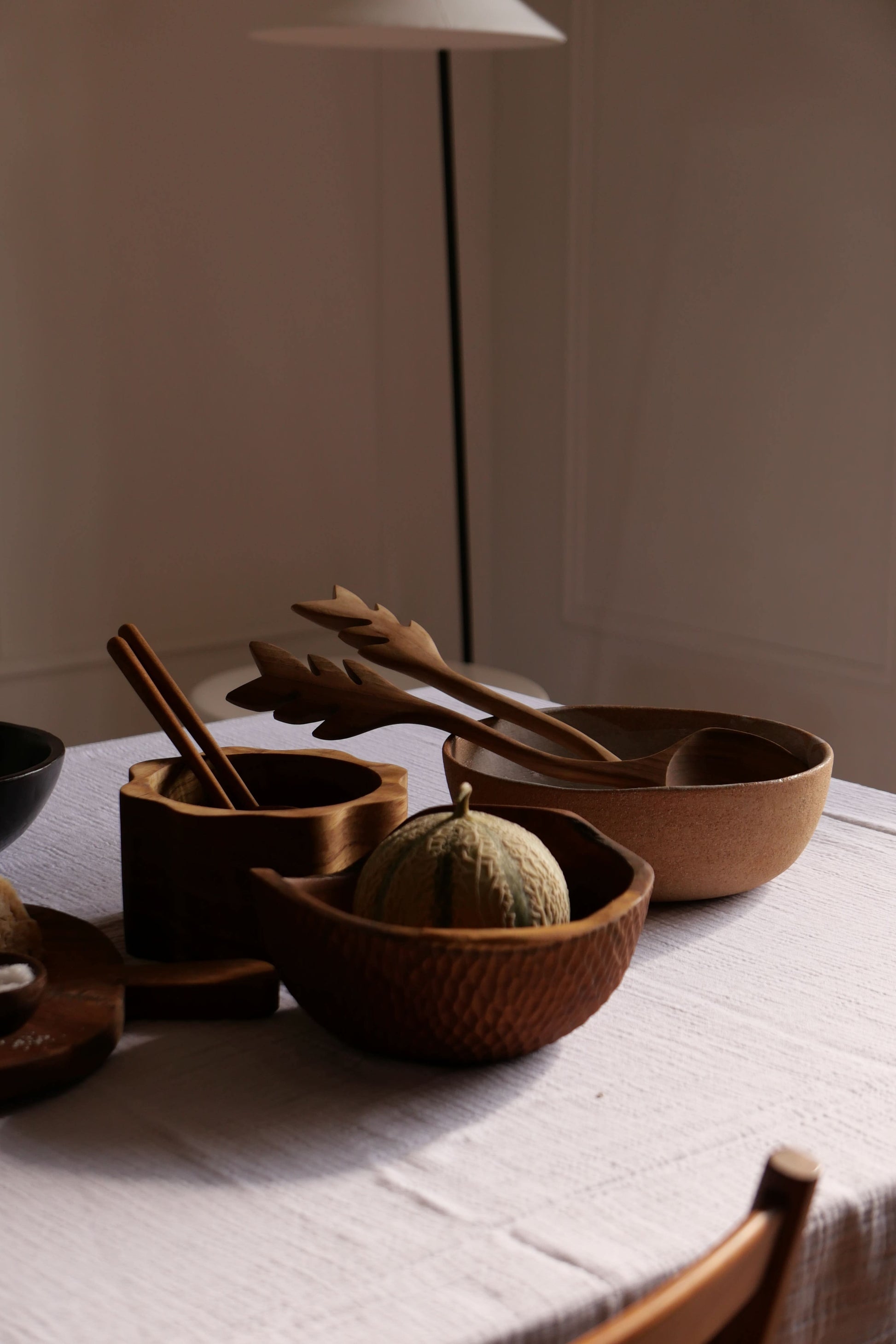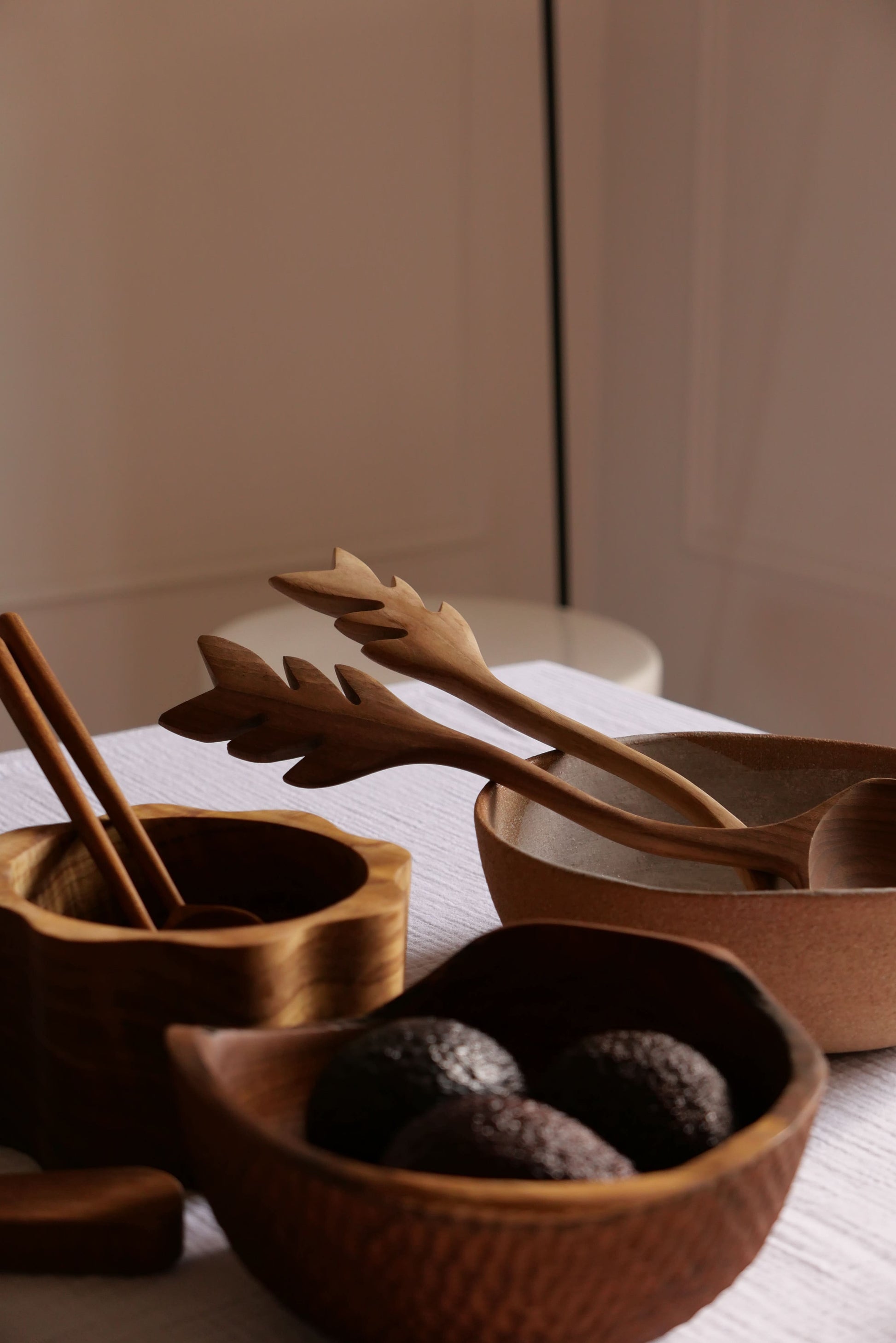 Les grands couverts à salade en teck sont des accessoires de cuisine élégants et pratiques. Fabriqués à partir de bois de teck de haute qualité, ils ajoutent une touche de sophistication à votre table. Leur taille permet de mélanger et de servir facilement vos tablées généreuses.