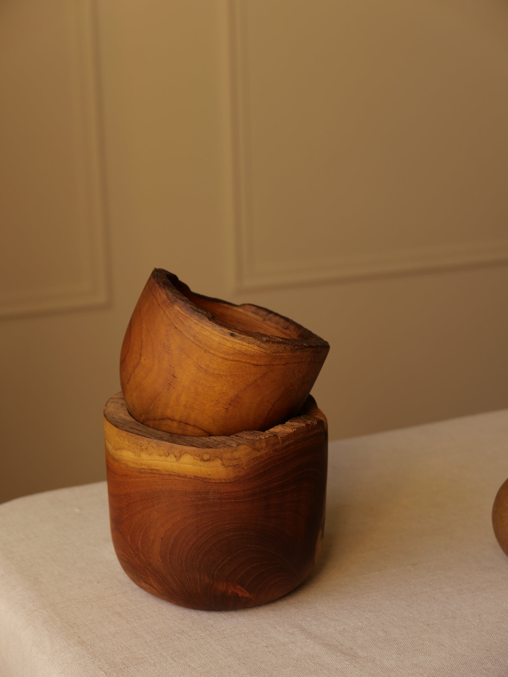 -1x duo de bols aux bords naturels, parfaits pour présenter sauces, fruits secs ou accompagnements avec charme et authenticité (moyen D.12 X H.10 cm, petit D.10 X H.10 cm)