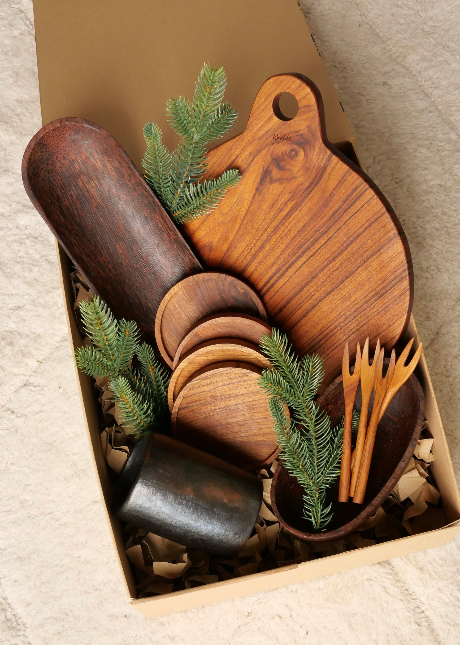 Offrez — ou offrez-vous — une expérience authentique et raffinée avec cette box de Noël soigneusement composée autour du bois de teck et de coco. Une sélection pensée pour embellir votre table et célébrer les fêtes avec style et convivialité.