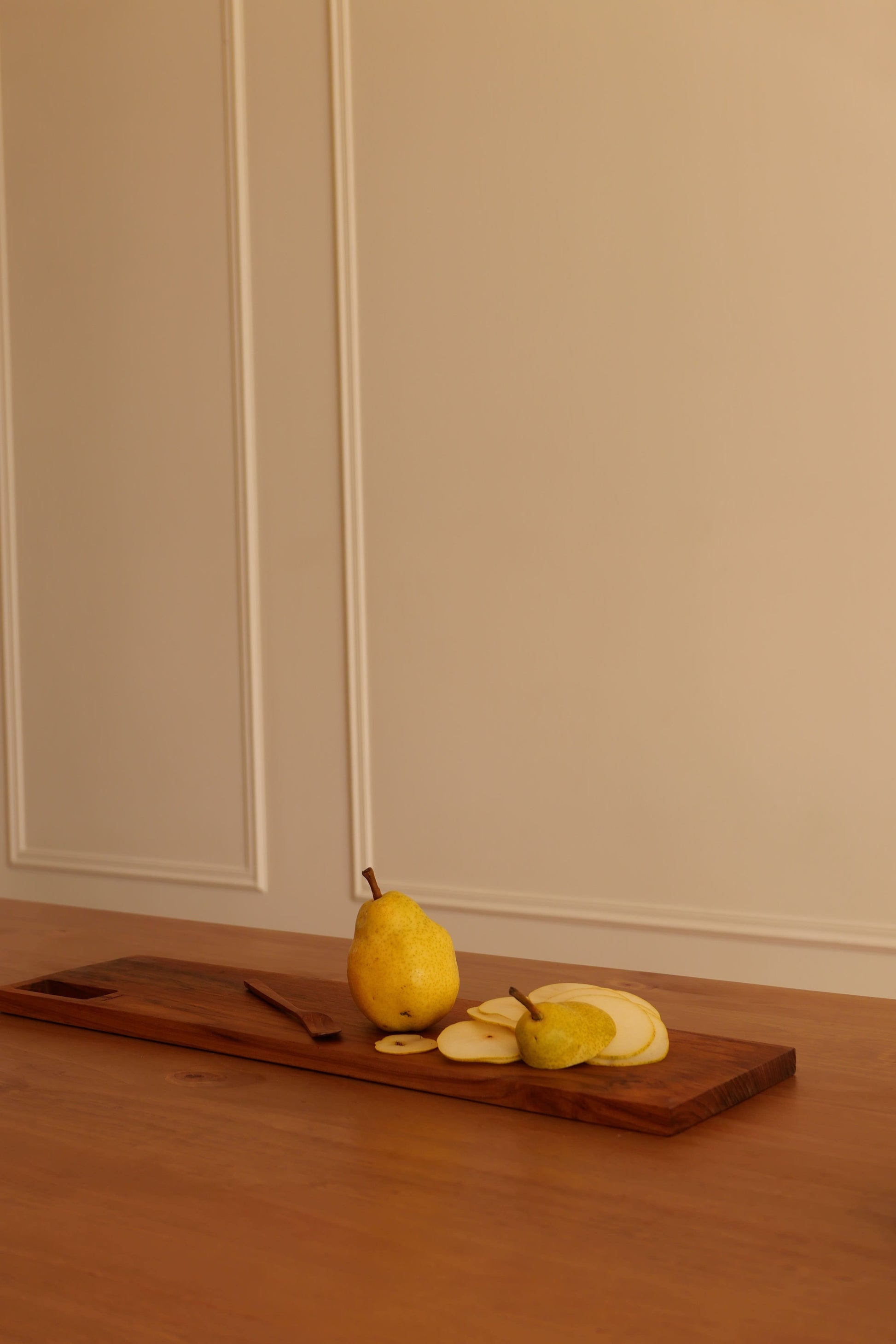 Apportez une touche d'élégance naturelle à votre cuisine avec notre grande planche en teck. Fabriquée à partir de bois de teck massif de première qualité, cette planche combine esthétique et fonctionnalité, idéale pour une variété d'utilisations culinaires.