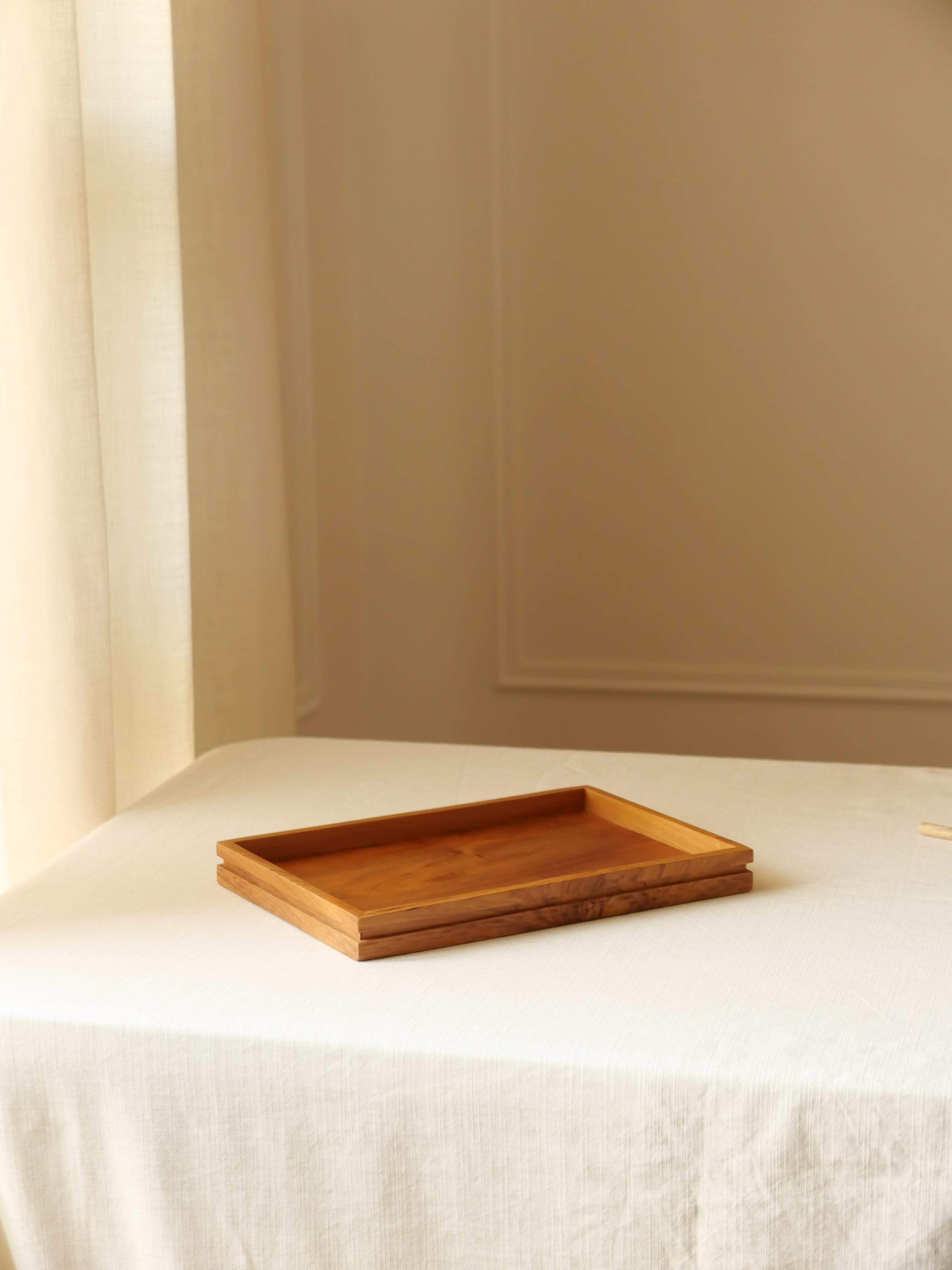 Compact et raffiné, il est idéal pour servir un espresso, quelques douceurs, ou présenter de petites attentions lors d’un moment de pause. Le teck, reconnu pour sa robustesse et sa beauté naturelle, révèle ici toute sa richesse à travers un jeu subtil de motifs et de nuances.