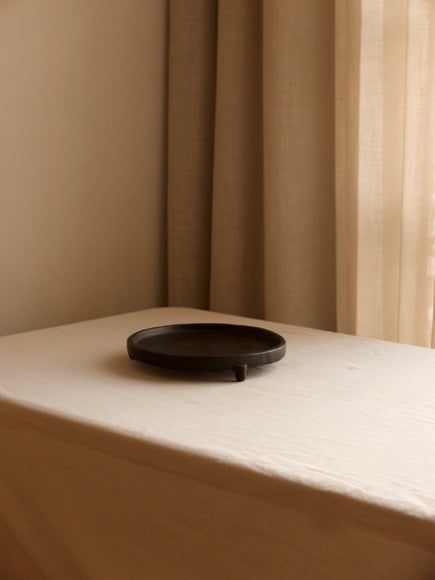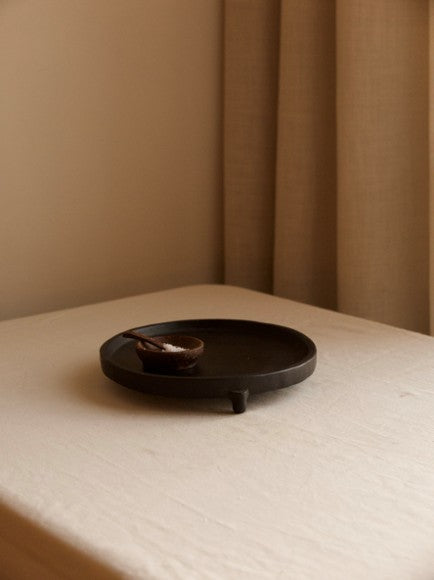 L'assiette est dotée d'un piétement en terracotta qui lui confère une élégance et une stabilité supplémentaires.