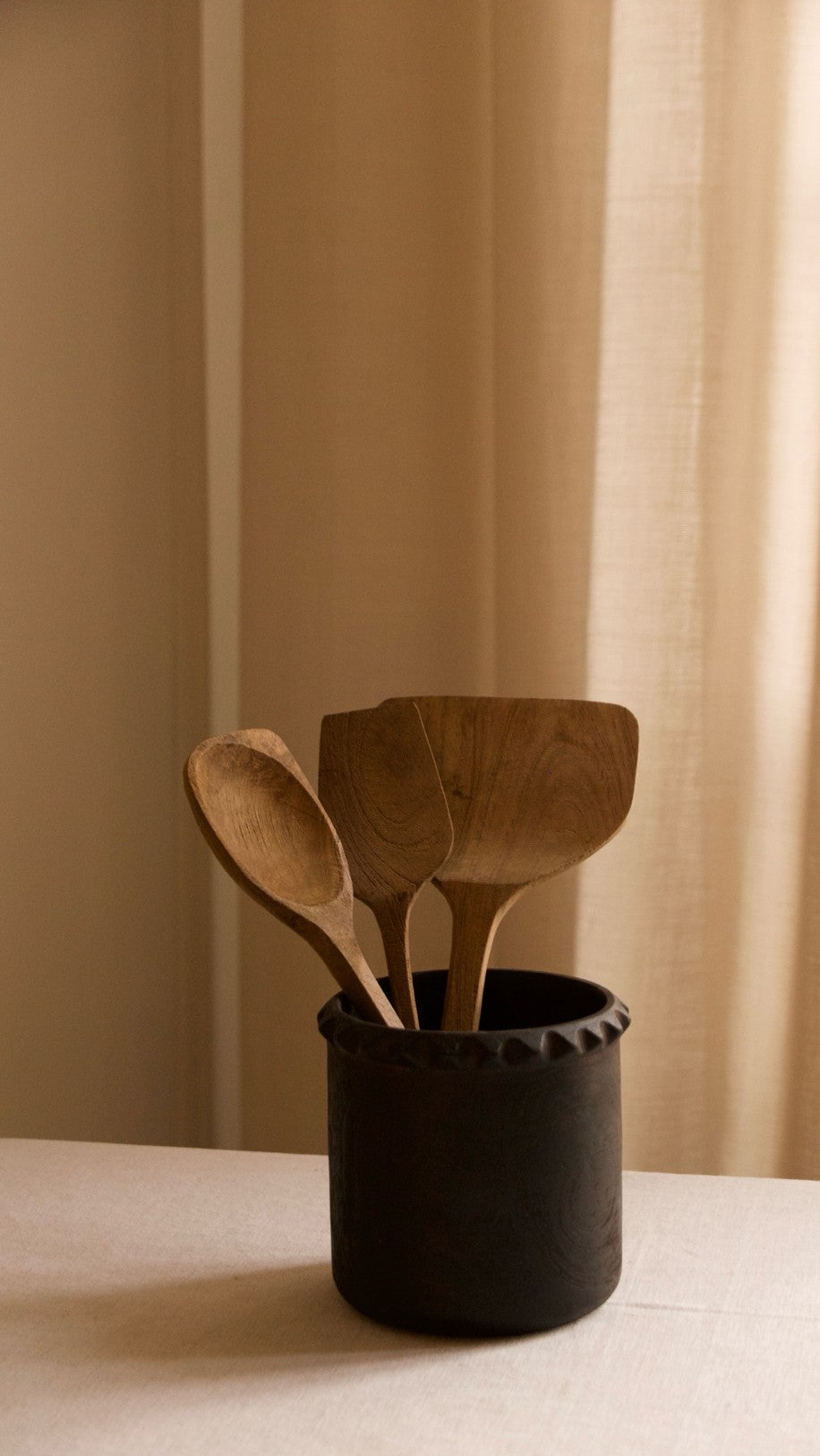 Fabriqués à partir de bois de teck de haute qualité, ces ustensiles sont non seulement durables, mais aussi résistants à la chaleur et aux taches. Le bois de teck est également connu pour sa résistance naturelle à l'eau, ce qui en fait un choix idéal pour les ustensiles de cuisine.